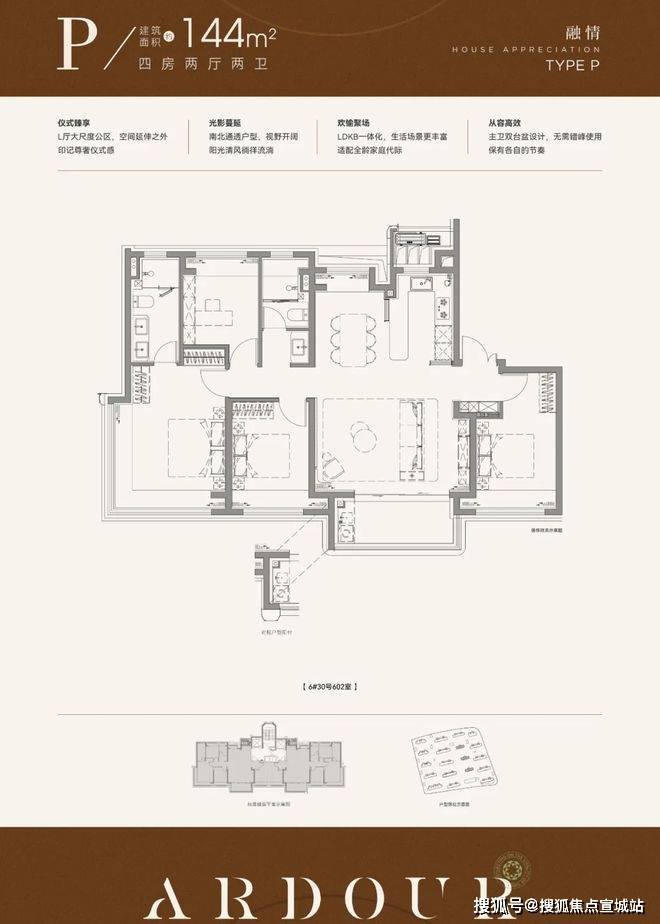 再来看下建面约144㎡4房,部分装标是有所升级的。