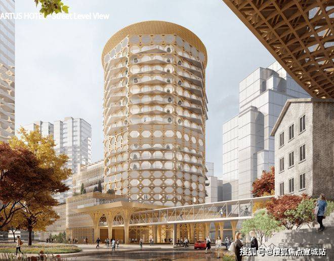 K11ARTMALL楼高9层,总建筑高度60.55米。K11ARTUS效果图K11ARTUS楼高18层,总建筑高度74.80米。把“龙井梯田”的理念融入建筑,以立体园林的巧思,两座塔楼随着高度增加逐层后退,在退层中种满绿色植物营造出空中花园。而塔楼之间在底层形成“城市峡谷”,这里是一个公共的开放式互动空间。这两座塔楼亦是整个项目制高点,瑰丽酒店规划了17层,K11ATELIER规划了20层,最高建筑高度92.075米。不同地块之间以天桥或商业连廊的形式进行互联,就像杭州丝绸般丝滑与柔顺,新世界中国称之为“杭蕴绸带”,通过“杭蕴绸带”将K11ARTMALL、K11ARTUS、K11ATELIER、ROSEWOOD、国际社区“江明月朗园”五大顶级业态被丝滑串联起来。