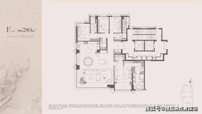 面约190㎡ C户型,两梯两户,私享梯厅,家的玄关尺度,延伸至电梯厅,增加实际使用面积。入户处大师定制瓷板门牌画,私属感满满,打造专属归家仪制。
