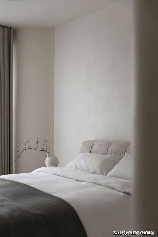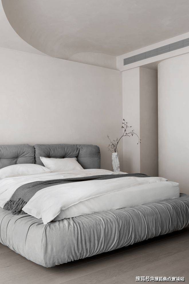 卧房应用现代简洁概念,柔美墙层淡化本身线条的硬朗感。以相互克制的布局,守护个人隐私和渲染温馨美感。