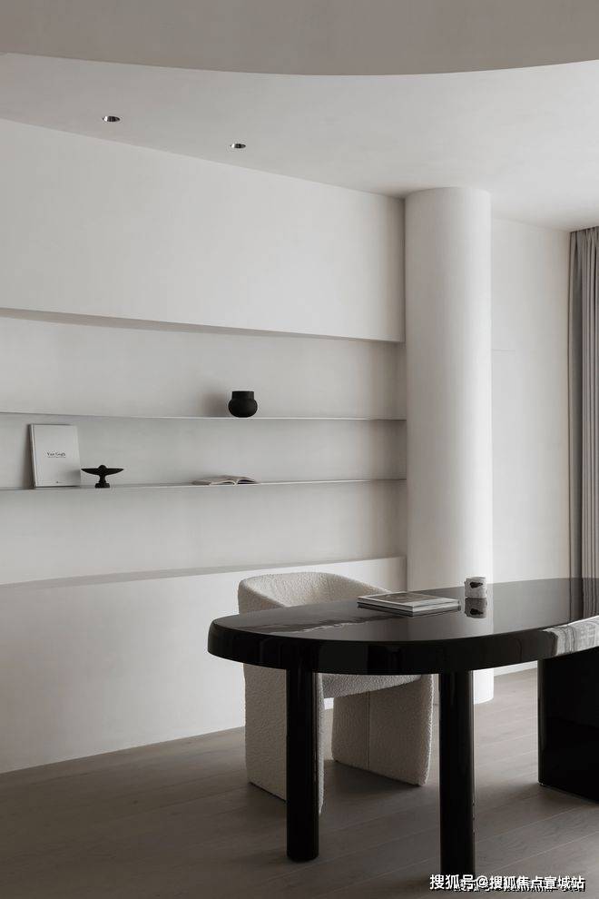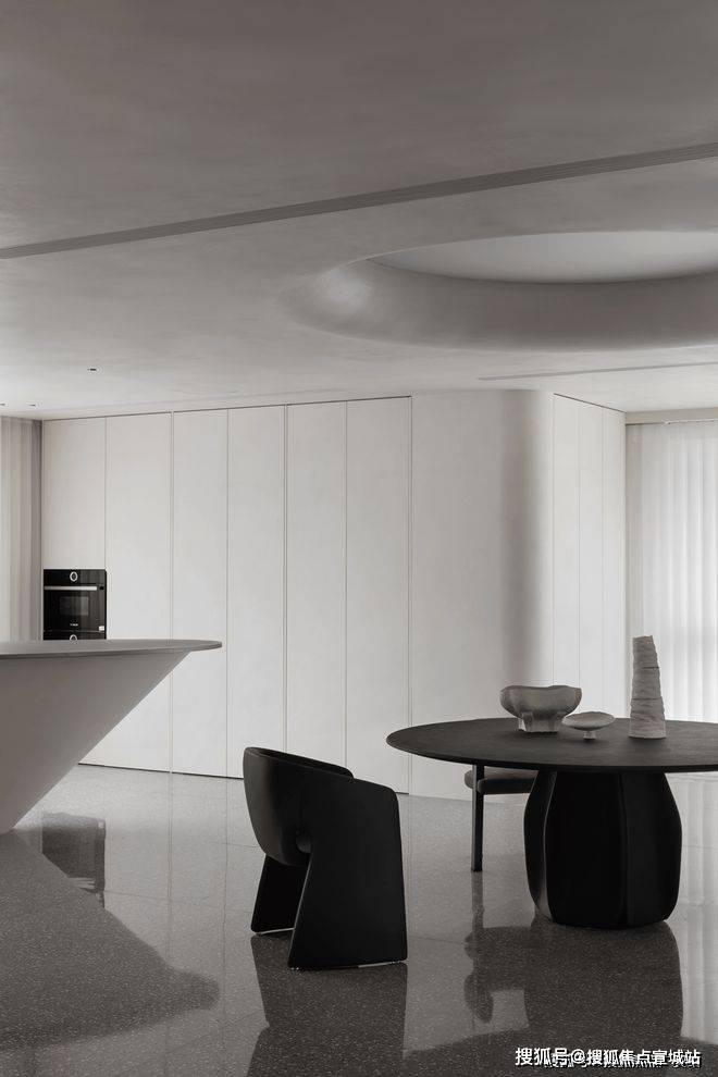 建筑无实体分隔作用,以微妙的空间区分,达成顺畅的自由度。采用微水泥色彩形成淡然基础调。流线架构赋予整体设计一层流动性美感。