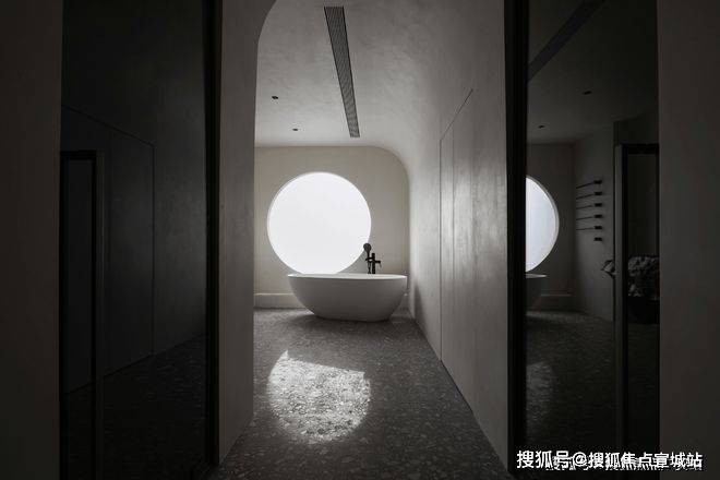 沐浴间巧妙打破功能主义的限制,运用艺术曲线替换常规卫浴的机械观感,转而营造更治愈休闲的日常。