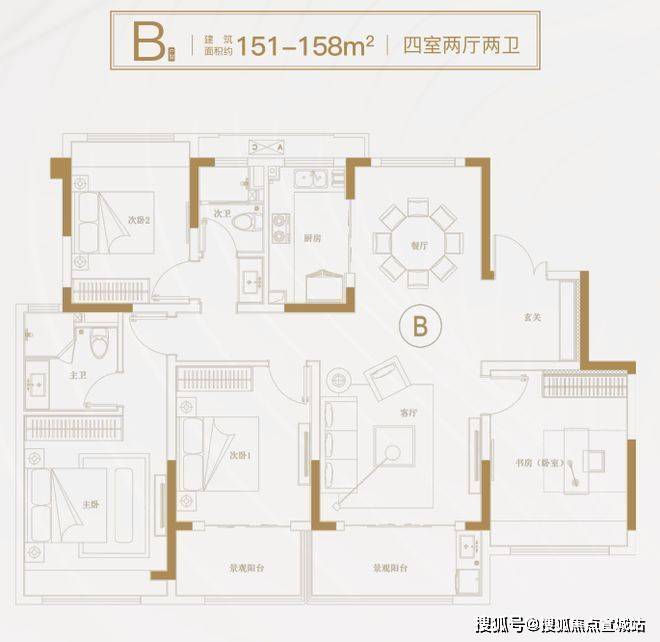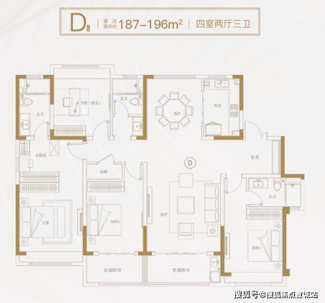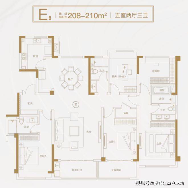 户型信息:户型主要有 187㎡的四居室和 208㎡的五居室,均为全明格局,南北通透。
