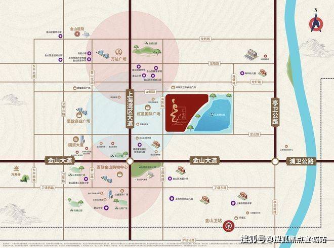 教育配套:北侧约 400m 区域有金山新城幼儿园、金山小学、金山初级中学等。