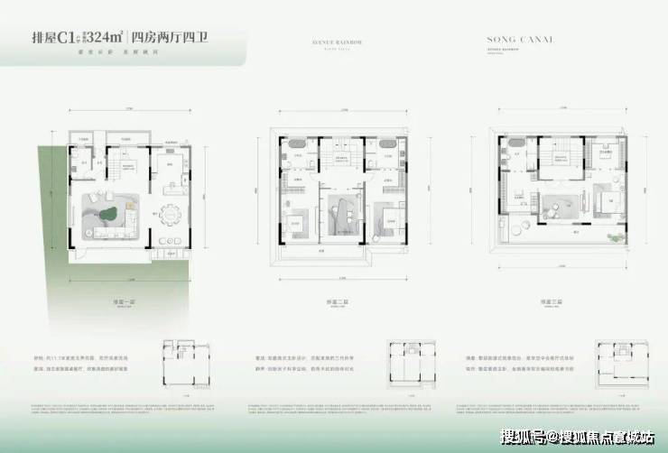 其 建筑面积约为136-176㎡,控制得当。虽然产权面积被有效控制,但墅居产品该有的空间感却没有减少, 前庭后院、地下延展空间、屋顶空间.....一系列空间,与市场上300㎡+产品在尺度表现上并无太大差异。
