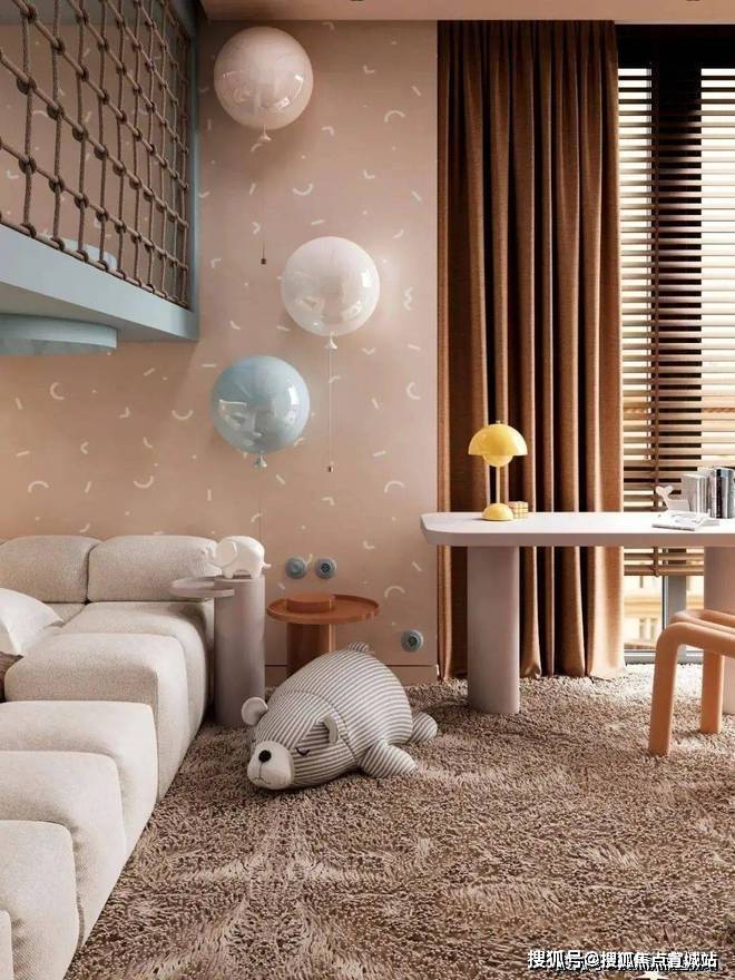 儿童区域则增添了更多的色彩,备显轻松、活力,浅蓝色让人如临海洋,黄色积极活泼有张力,而米色作为主颜色打底,遍布整体空间,来给予温馨、居家的氛围感。