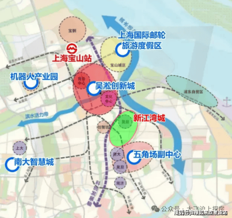 新江湾城的北翼,上海9大主城副中心之一的吴淞创新城,正在经历“北转型”科创产业大升级。新江湾城的南翼,另一个主城副中心江湾五角场,作为“金色中环发展带”,串起上海北部核心商务区,正从传统都市商圈向产学研复合城区变迁。