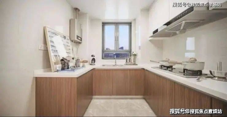 厨房采光面大且正对餐厅,东线布局合理,厨房U形布局使用率高;