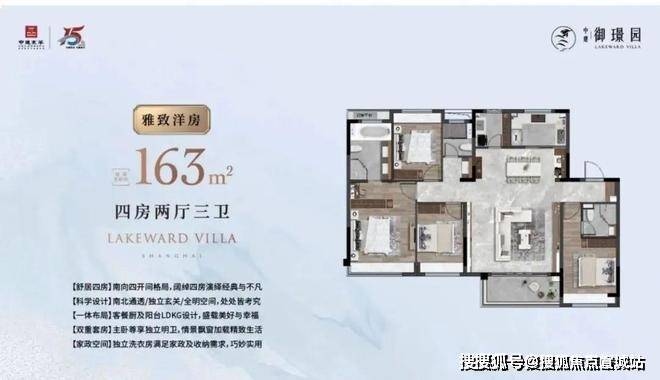 低密滨水社区:项目容积率仅 1.2,西南直面上海之鱼湖景,东临金汇港天然水系,双面临水,生态环境优越。