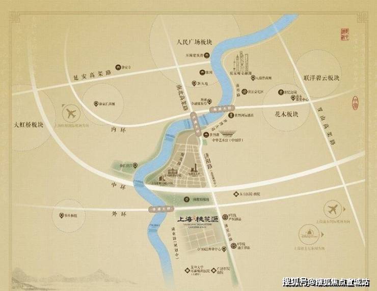 上海桃花源的择址,与传统市中心人民广场在南北中轴线上,由济阳路快速路、中环、外环以及各大隧桥快速连通市区,这是项目出则繁华的基础。