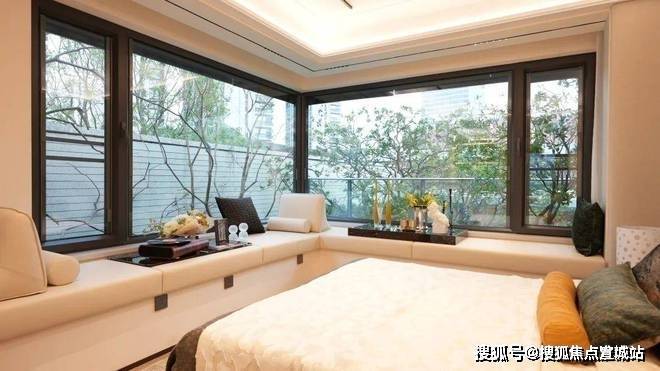 阳台和主卧采用270°的L型环幕设计,主动拥抱更丰富的园林景致.