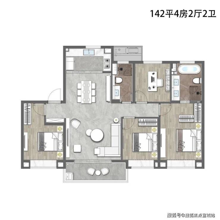 ②建面约142㎡4房2厅2卫,楼王户型,更显尊荣!