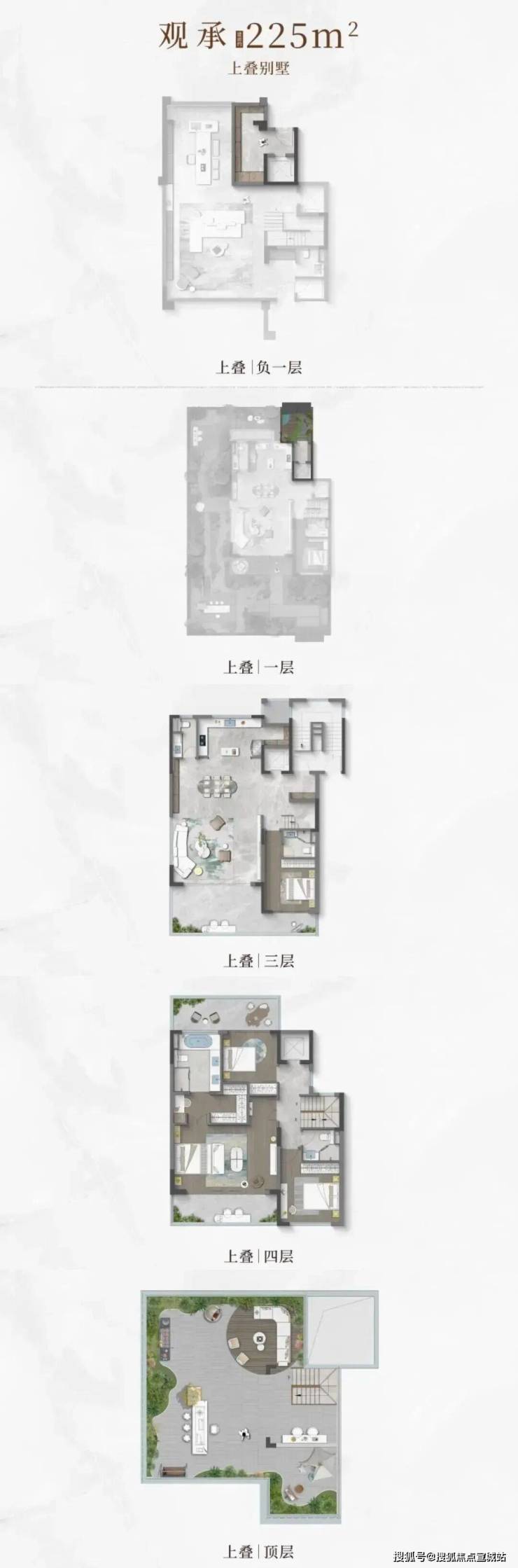 叠墅:建筑面积205-325㎡,毛坯交付,总价441-720万元,下叠带地下室。2