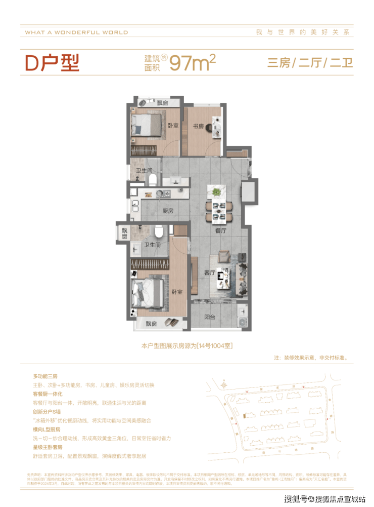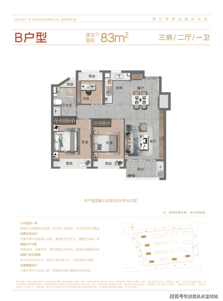 高层主力户型(精装,76-143㎡,得房率约 80%):