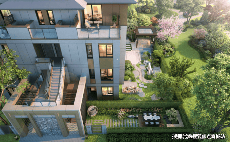 相比市面常见的6层叠加,东滩·海上明月叠墅只有4层,意味上叠“亲地性”更好。