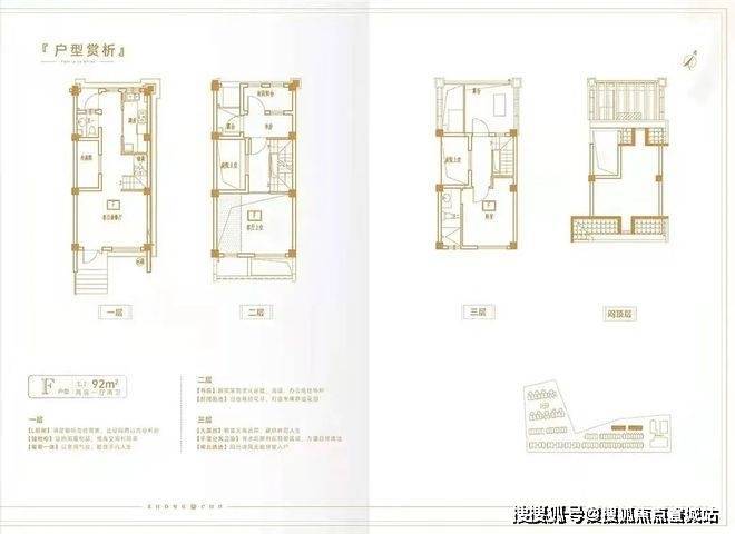 联排别墅:面积为 90-176㎡,分为中间户(90-120㎡)和边户(150-176㎡),总高三层。