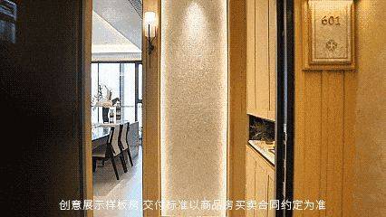 侧边交付了通顶玄关柜,玄关柜台面材质为发光云石台面,整体的光泽和美感十足。