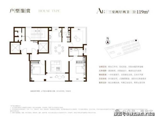 建面约119㎡三房,奢享140㎡的尺度感