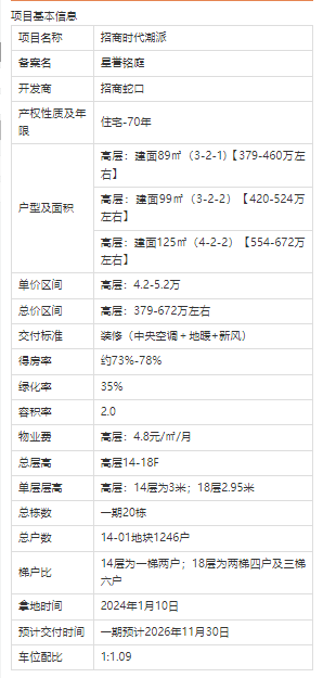 产品方面,【招商时代潮派】加推153套建面约99-143㎡全装修3-4房,均价52377元/㎡,2月8号认购。