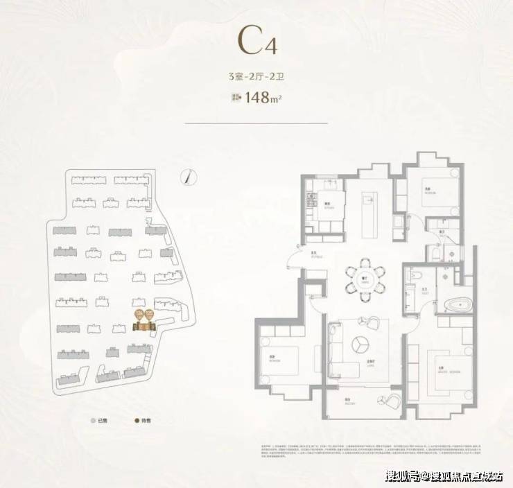 二室户型:建面约102㎡,主力为最后批次小户型,仅少量在售
