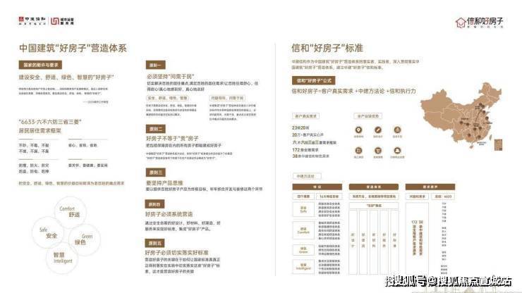 面向未来人居升级需求,中建信和深入贯彻落实中国建筑“好房子”营造体系,落地信和“好房子”标准,以“安全、舒适、绿色、智慧”为核心价值目标,在中国建筑“好房子”营造体系16大特征目标的指导下,落地16大技术价值体系,致力于解决中建集团172项全维需求与中建信和38项信和特色需求,将美好生活蓝图转化为现实。