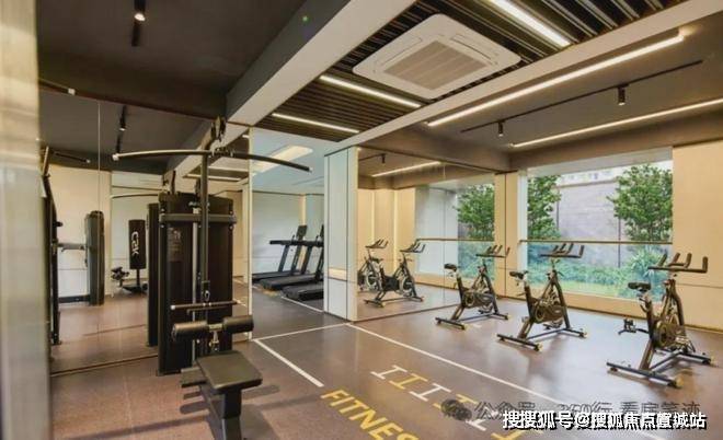 约145㎡健身盒子:配备专业器械区和水吧,打造专业级活力运动空间。