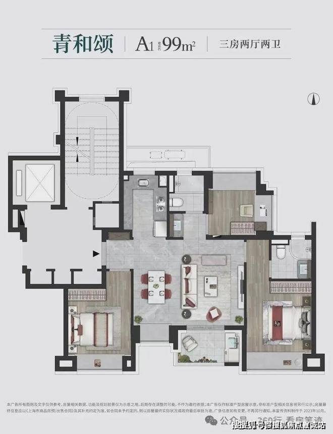 99㎡三房双卫:原价380万起,独家折扣350万起(飞机户型+南北通透)