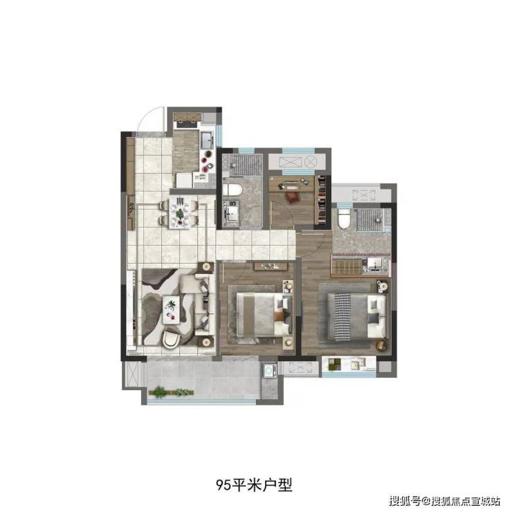 该示意图仅美好装饰效果展示,实际交付为毛坯。本宣传资料的户型图及户型布局图等仅供参考,不作为要约和承诺,所购同房型因楼栋、单元、楼层不同,栏杆、门窗形式、局部结构、面积、管线布置、承重墙体长短等均可能有所不同;本宣传资料中的家具、家装、空调等所有装修仅为示意,非交付标准,所购房屋的具体交付标准以签署的商品买卖合同及实际交付为准,本宣传资料于2021年4月19日发布,若责料更新怒不另行通知,敬请关注最新资料。