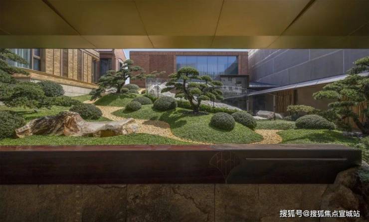 越秀外滩樾的公区庭院非常精致,其精心打造充满禅意的山水庭院。