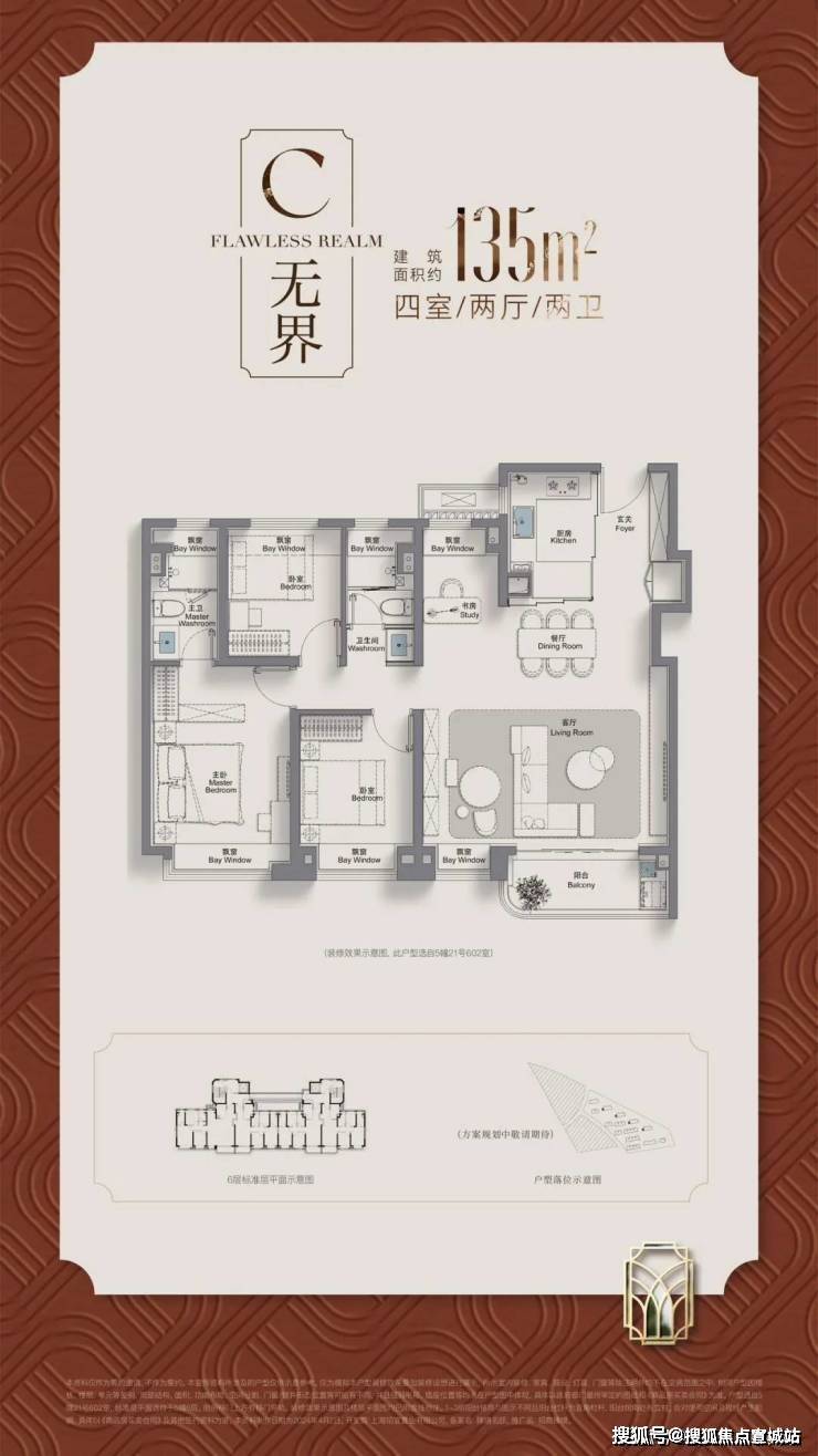 135㎡四房两卫大横厅设计,南向采光面达8.4米,主卧套房融入独立衣帽间;