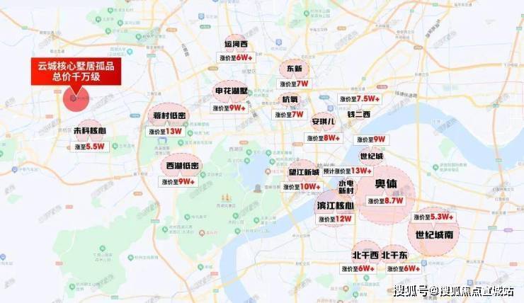 蒋村低密地块,楼面价8.8万+,放风单价13万以上,一套总价要6000万起;湖墅民生药厂地块,叠墅预计售价13万+,总价3600万-8000万;和家园玺园均价9.06万/平,总价1700万-3000万以上……