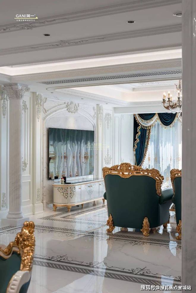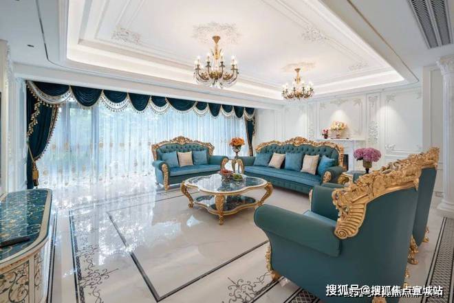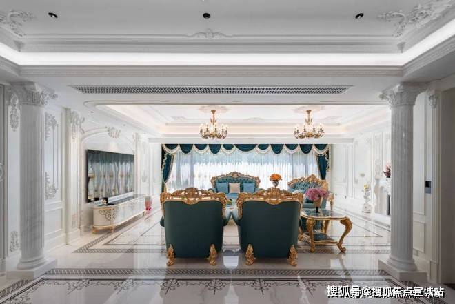 法式风格非常注重对称性,通常以一个视觉中心点,如壁炉展开布置,围绕这个中心点进行对称布局,营造出恢宏的气势和奢华的居住空间。