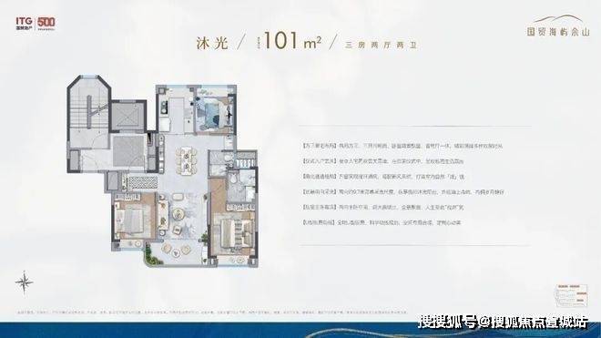 除了叠墅外,全社区仅4幢建面约101㎡沐光全景小高层,通过前瞻排布,几乎做到了户户景观无遮挡。