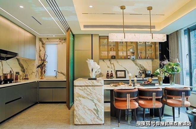 中厨可做独立空间,也可以完全敞开,与西厨餐厅相连,整个空间打开,更加宽敞。