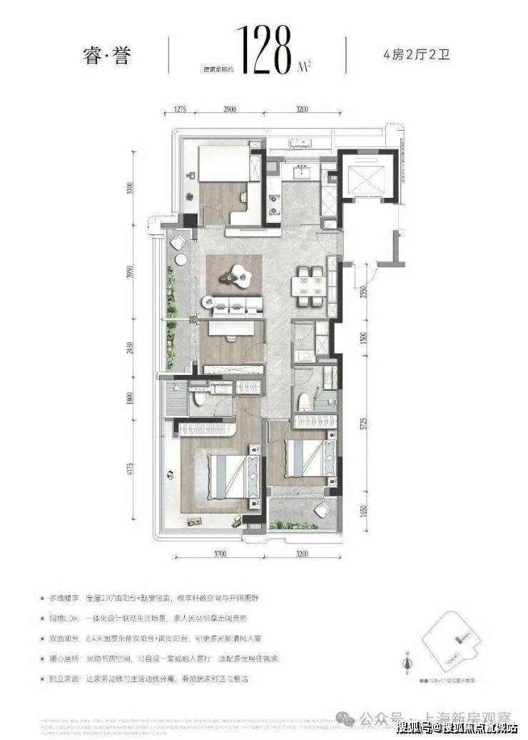项目首开80%以上房源总价低于2000万!最低甚至只要约1627万起,首套首付约240多万就能在一步到位进阶内环内4房,非常诱人。