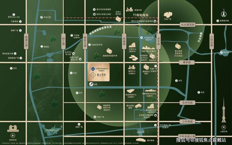项目择址嘉兴双溪湖板块超级未来社区核心,双溪湖超级未来社区作为国际商务开放枢纽示范区的重要功能单元,规划总面积约5.3平方公里,重点打造“1园7中心”,是以SOD+模式打造嘉兴创新、生态、共享的微型城市样板。