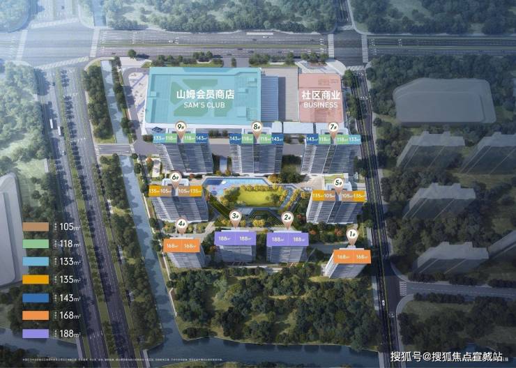 【户型面积】约105㎡、118㎡、133㎡、135㎡、144㎡、169㎡、188㎡