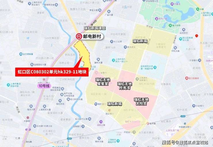 地块除了紧邻瑞虹的商业,南侧是新宏星小学,西南侧是招商云玺。