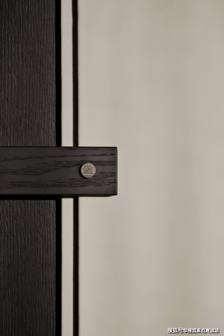 木质饰面的温暖纹路与铆钉的冷峻质感交织,光影透过百叶窗洒落,切割出细腻的条纹,在饰面上轻叩出一段无声的旋律。