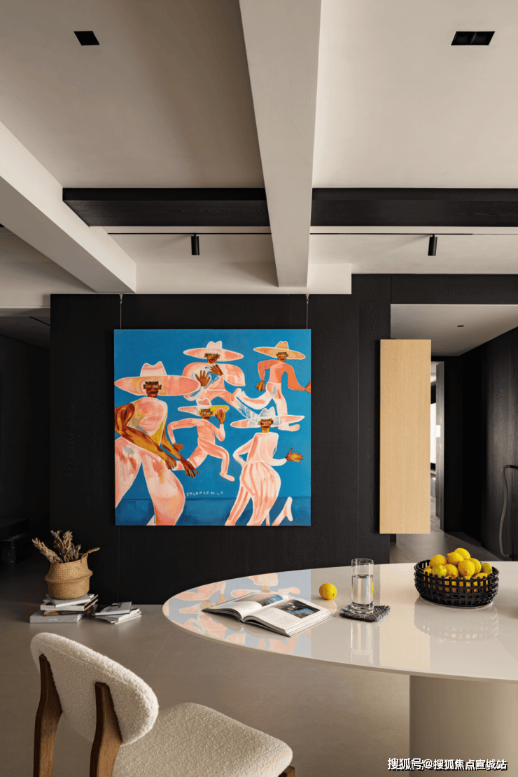 客厅色彩与光影交织,犹如复调的交响,层次分明,喧嚣与静谧并存,矛盾却不冲突。色块如同低语的音符,在空中编织,形成一种看似无序的秩序。