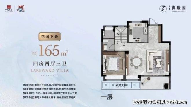 低密滨水社区:项目容积率仅 1.2,西南直面上海之鱼湖景,东临金汇港天然水系,双面临水,生态环境优越。