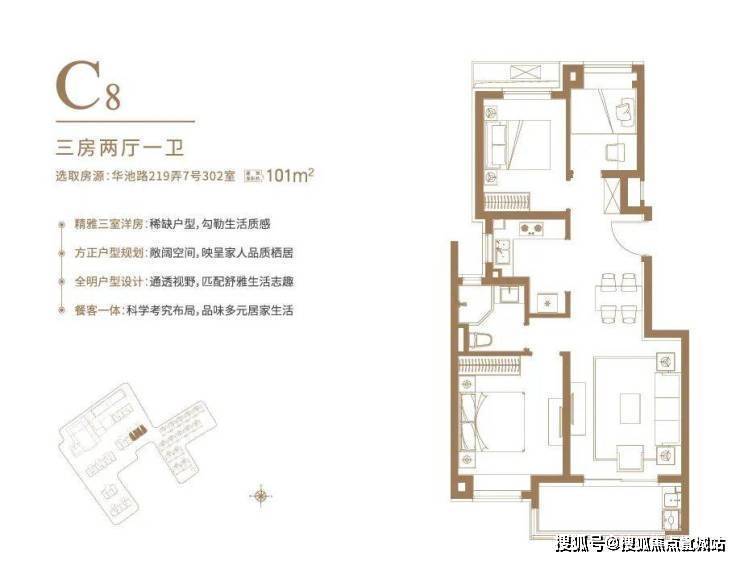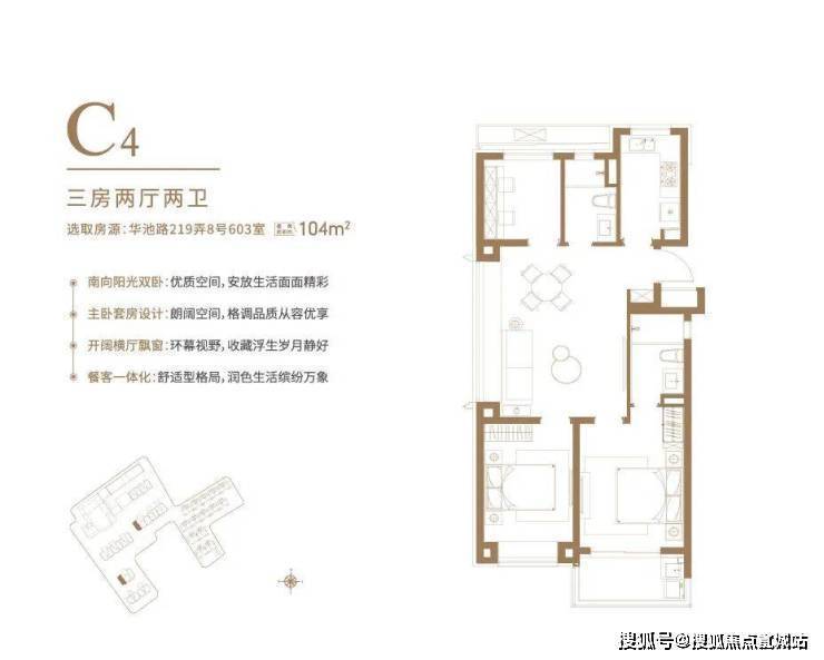 户型设计灵动,目前开放了104㎡3房2厅2卫和103㎡3房2厅2卫样板间,可谓是各有看点: