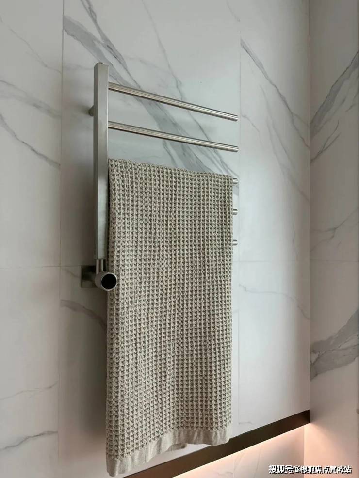 主卧卫生间配备的 电热毛巾架简直就是遇到潮冷节气的“福音”,让毛巾、内衣都能够提前加热干燥。