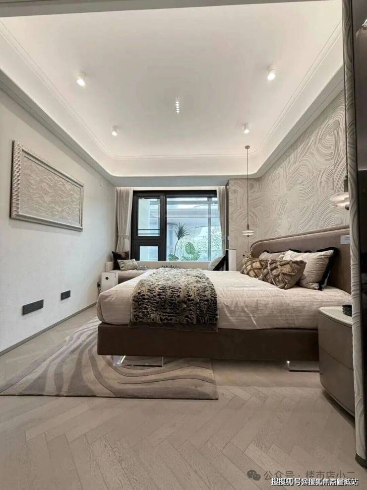 整个主卧尺度感是非常宽绰的,加上飘窗带来的视野延展以及收纳空间,居住舒适度拉满。如果是边套的主卧,还会有一个约270°的转角飘窗,尺度感和实用性更上一层楼。