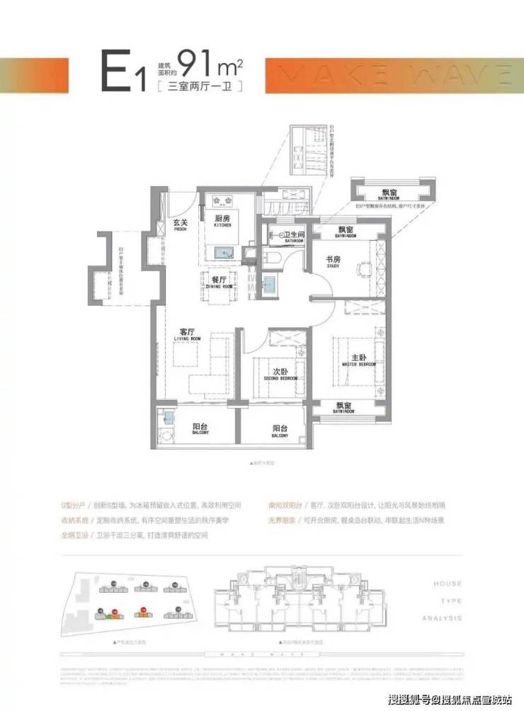 “南向双阳台+南北双飘窗”,构筑真3房户型!
