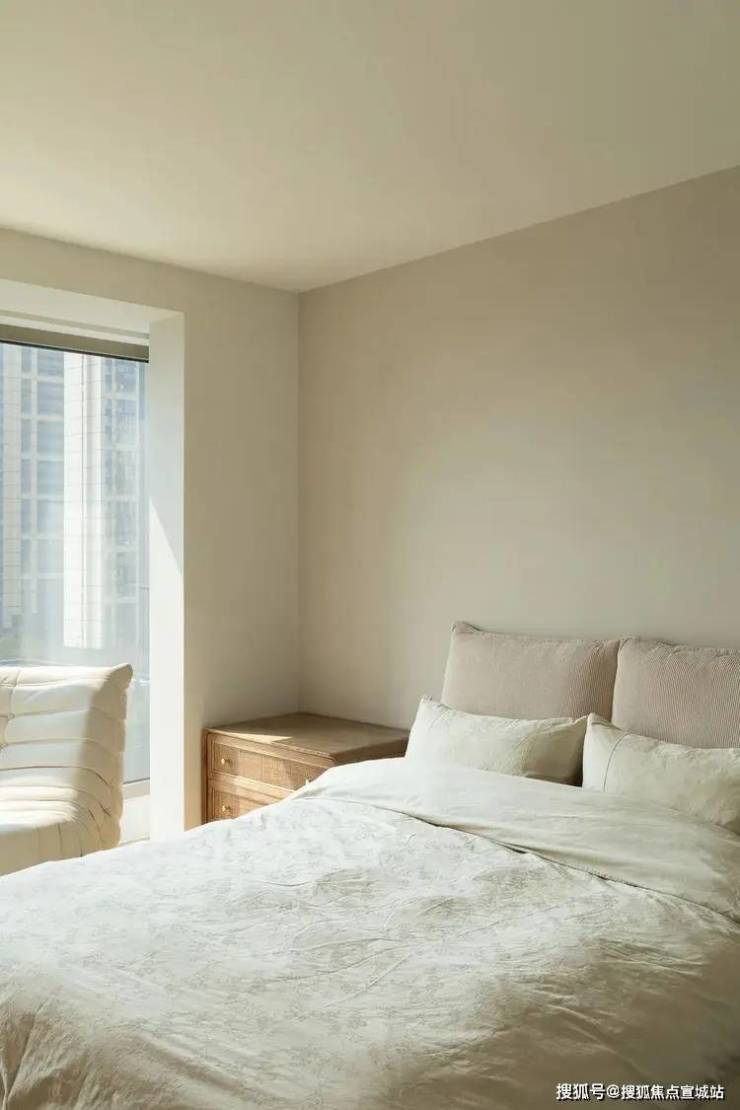 作为业主父母偶住的卧室既可以享受阳台带来的开阔视野和自然风光,也能在需要私密和安静时,轻松地切换空间状态。