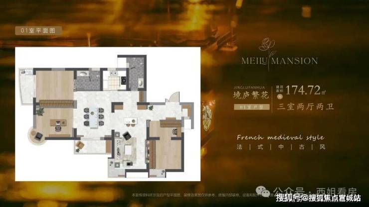 老卢湾里倾城映繁花项目基本信息/Basicinformation1.户型面积:约160-174㎡2.楼层层高:3米3.梯户比:三梯四户4.得房率:约75%5.物业公司:上海申大物业6.物业费:16元/㎡/月7.交付标准:全装修交付8.水费:6.3元/吨9.电费:平/0.99元/度谷/0.50元/度
