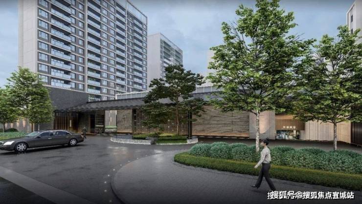 小区主入口借鉴五星级酒店的同款环岛落客区,长约40米、高约4-6米的归家大门,高级质感的金属、温润石材、艺术水景、下沉式卡座、双入户大堂,共同营造精致归家体验。