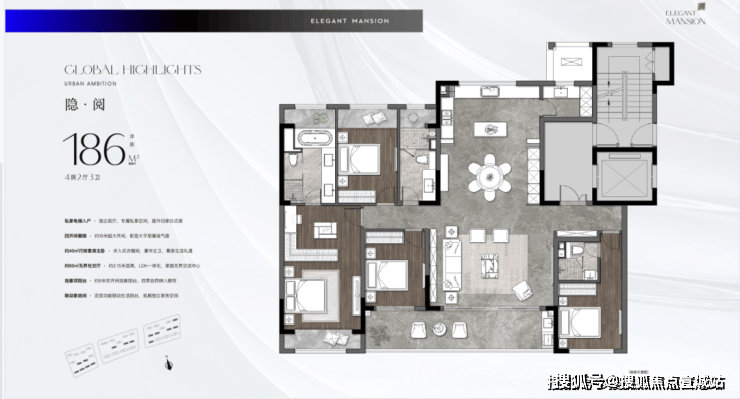 建面约186㎡ 四房两厅三卫