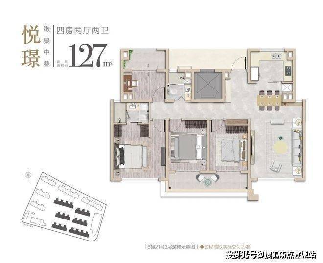 建面约127㎡中叠产品,一梯一户设计,超大南向采光面,做到了南向双开间超大露台,社区园林景观,尽收眼底。